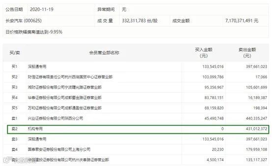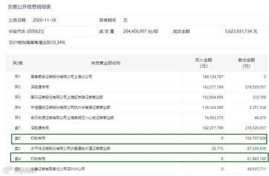 此前的11月18日,两机构席位分别卖出1.07亿元和6187万元长安汽车股票。
