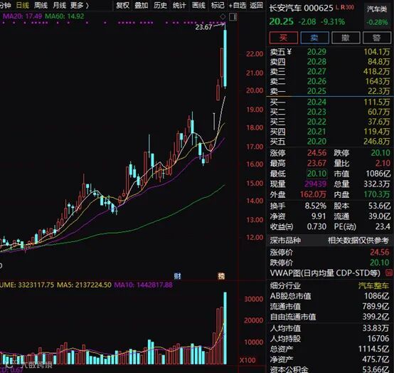 又来龙头股突然跌停,这次是市值已超过千亿元的汽车股长安汽车。