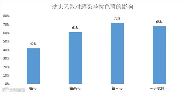 统计结果表明,40岁以上的客户头皮马拉色菌大量繁殖的现象更为普遍,高达81%;洗头频率较高的客户马拉色菌繁殖量明显较低。