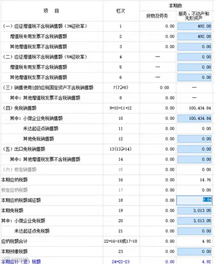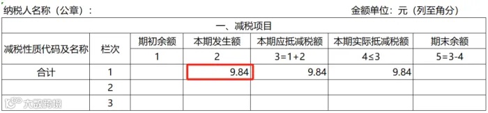 按理说没有任何问题。但是提交申报的时候,减免税明细表始终无法通过比对。系统提示是,减免税明细表本期发生额小于开票的不含税金额的2%。