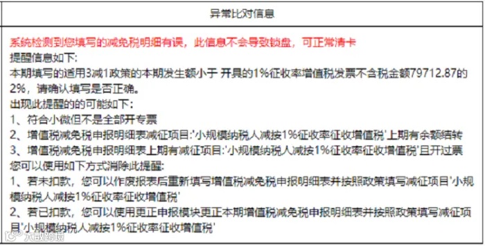 类似的情况,这个月很多人都收到这种提示!本身小微减免的部分就是不需要填写减征发生额的,现在申报系统自动按开票的不含税销售额自动比对,这自然是比对不通过的。