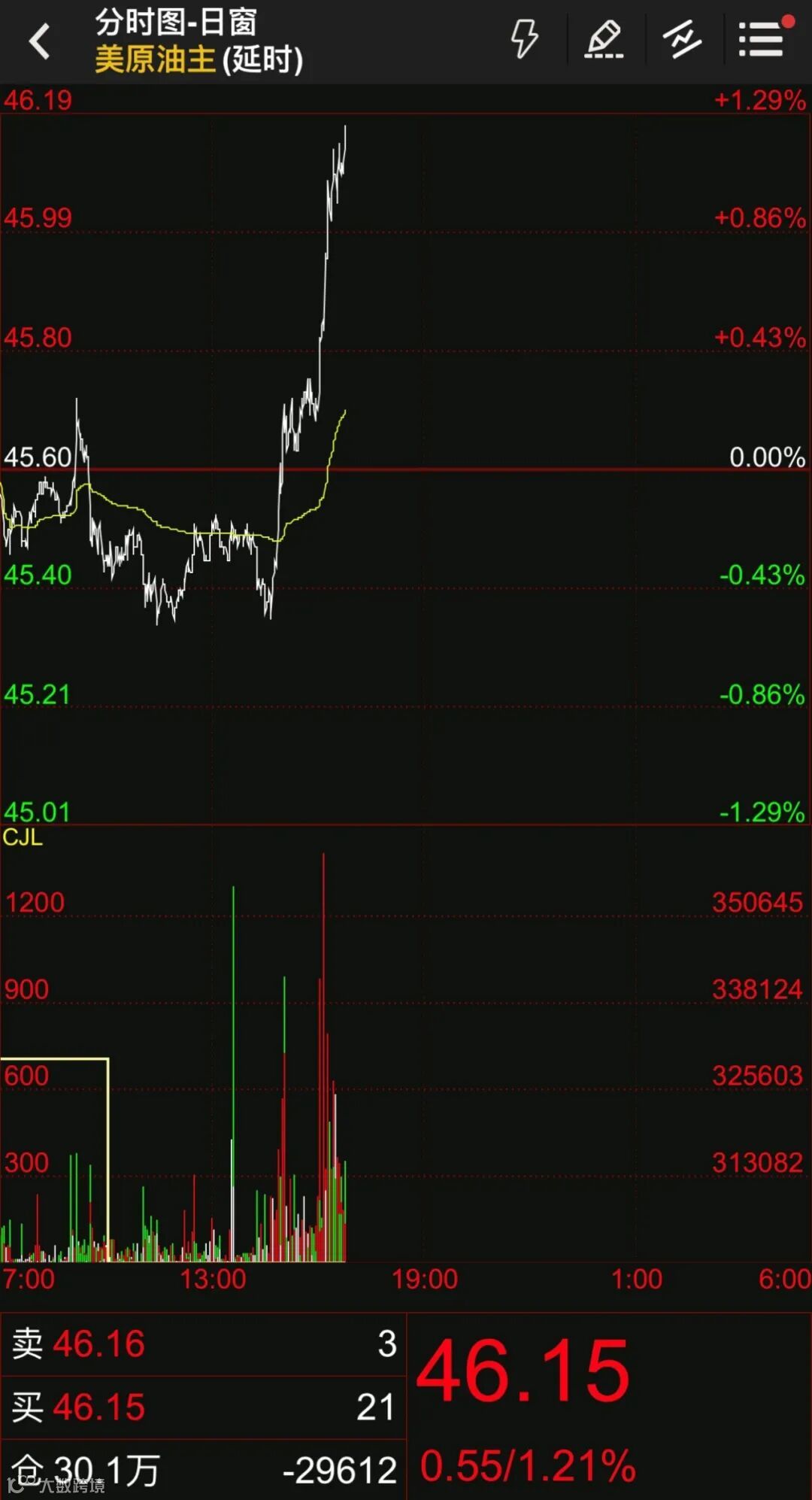 如今,伊拉克的油田也遭到袭击,不过由于该油田的日产量约为2.5万桶原油,占伊拉克的产量约2%,全球产量万分之二,消息散布后,油价出现短线拉升,目前报价为46.15美元/桶,上涨1.21%。