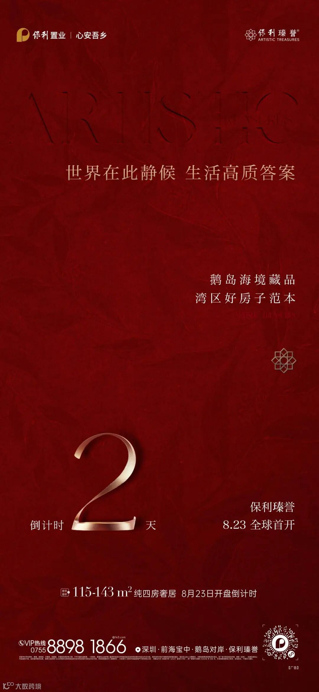 8月23日,保利瑧誉将迎来全球首开,建面约115-143㎡纯四房奢居,作为誉系3.0的标杆之作,它不仅是深圳城市封面,更是全球高净值人群资产配置的“首选项”。