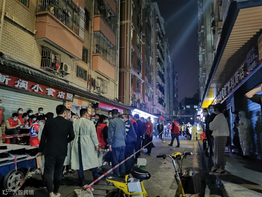 现场工作人员表示,今晚要加班,尽量完成笋岗村南区所有的核酸检测工作,现在的重点是发生疫情的那栋居民楼以及周边的居民楼。