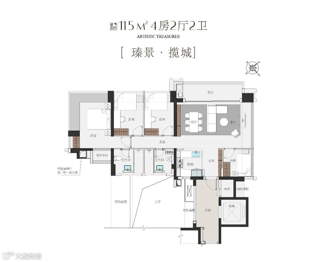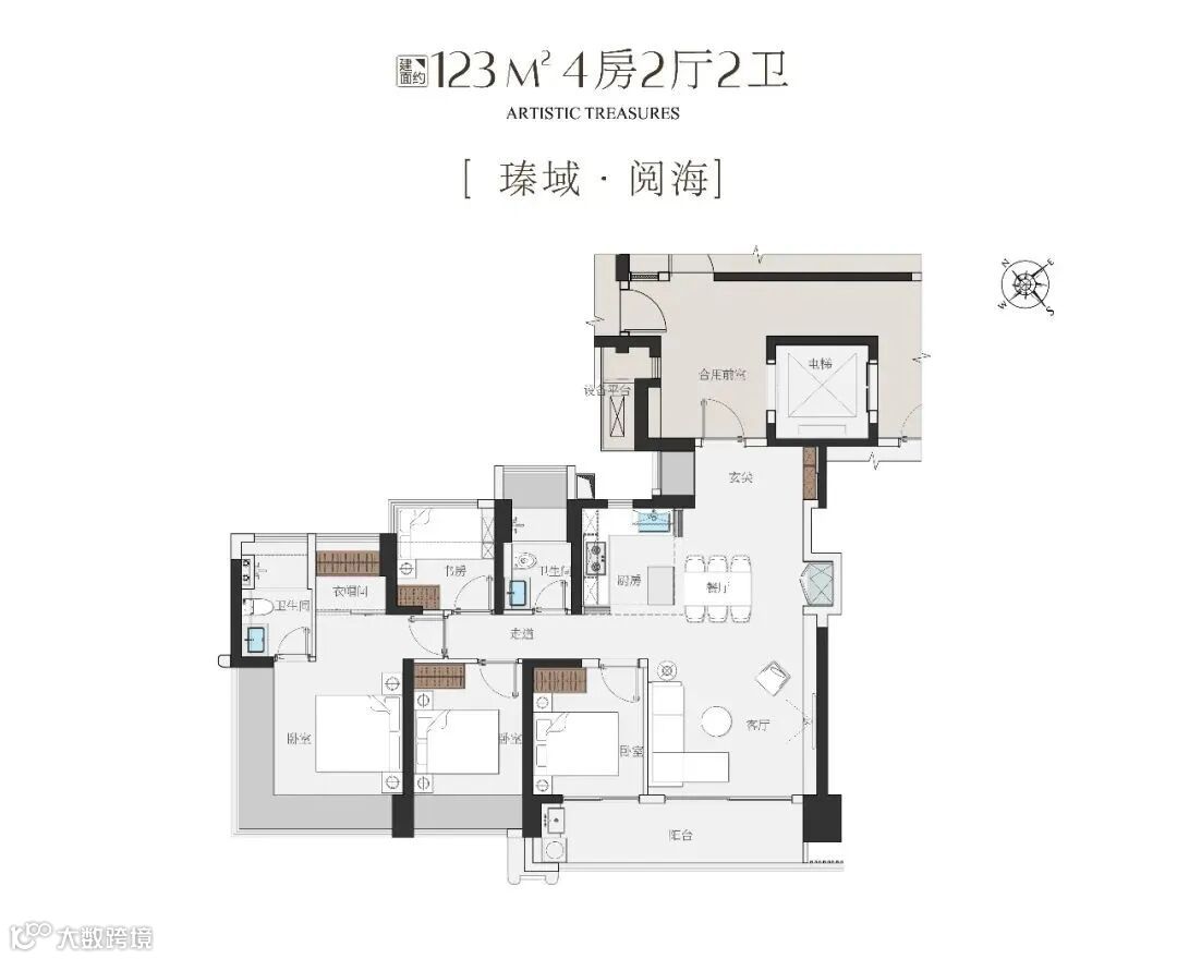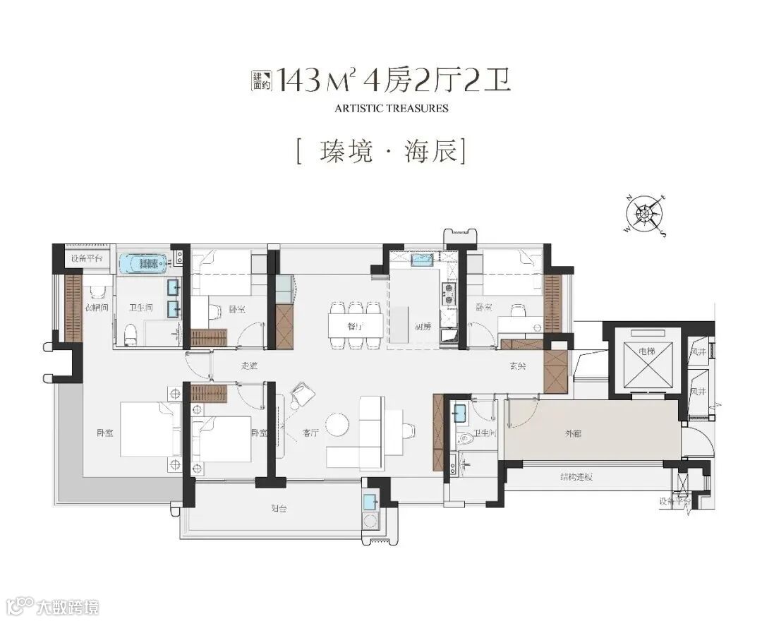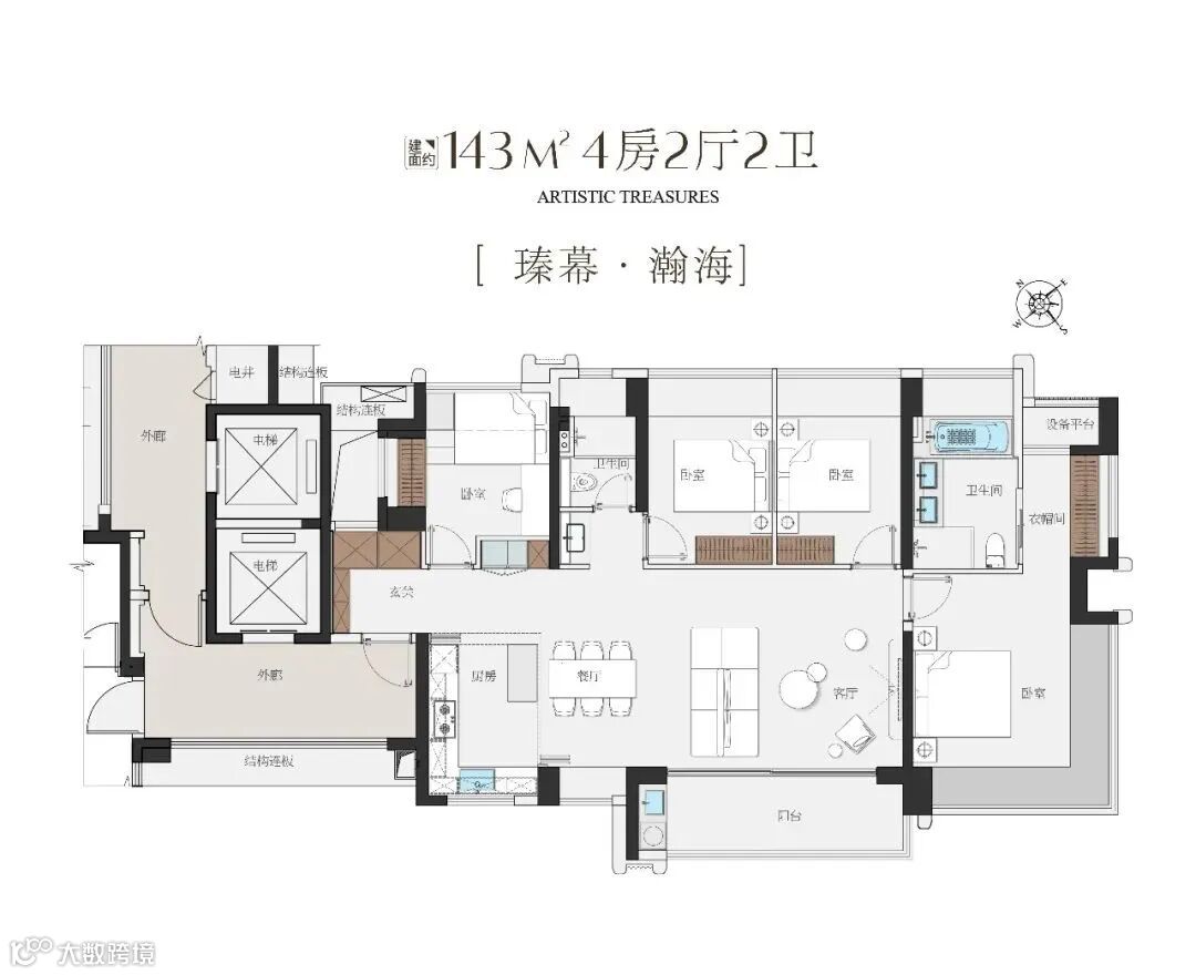 约6米横厅+独立电梯厅+270°IMAX环景主卧舱;同等面积更大排场丨全生命周期户型丨全屋低浪费空间
