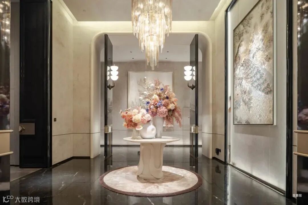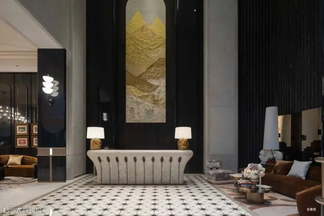 约11米挑高礼序门庭巍然矗立,黄铜与玻璃的材质交响,在几何切割的光影中淬炼出贵族雍容。每一次推门而入,皆是媲美LANA顶奢艺术酒店的度假仪式——这并非传统意义的入口,而是通往未来栖居的时空密钥。