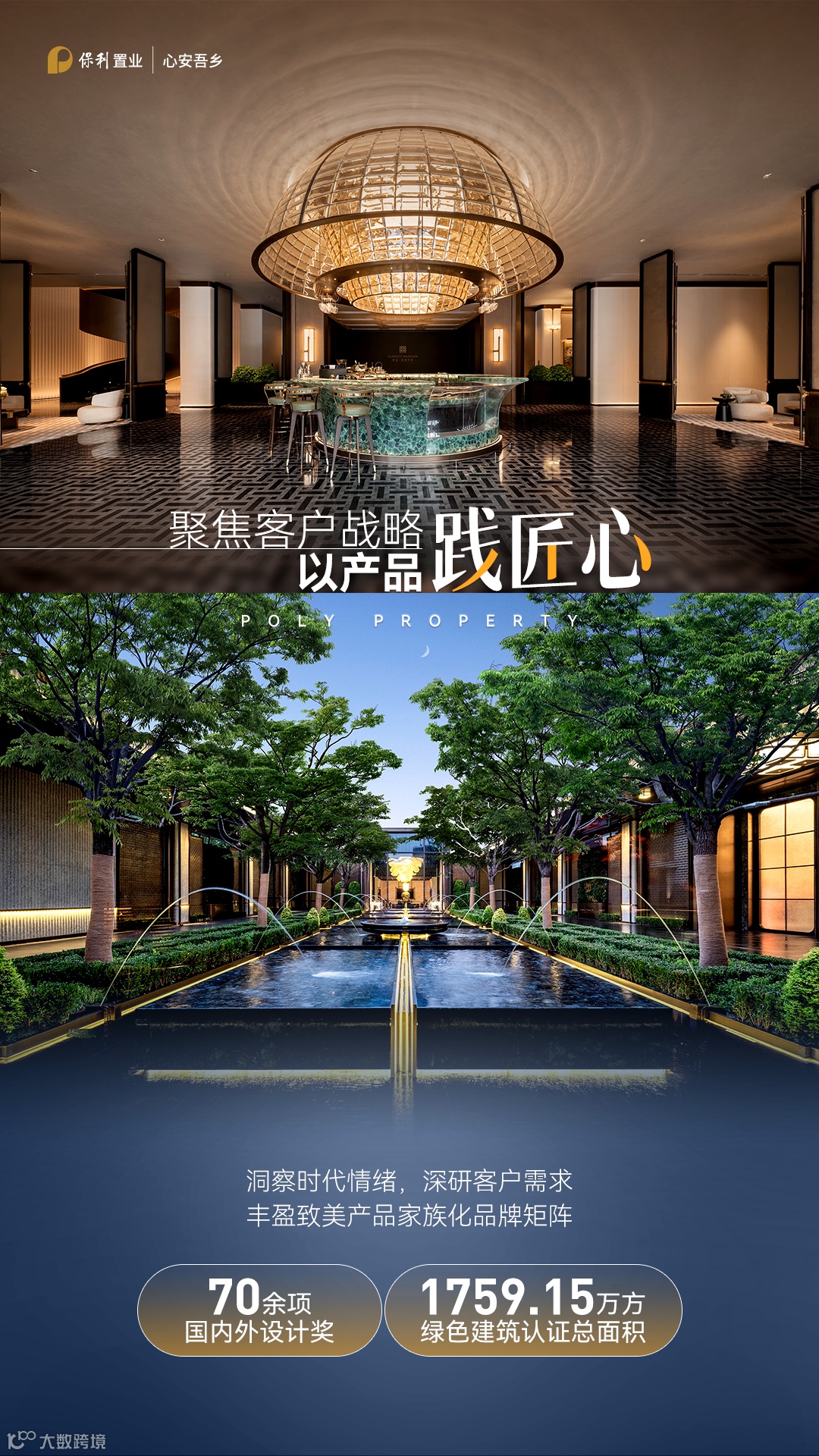 以产品与品质的匠心独运,引发客户情感共鸣。保利置业确立以“东韵西境”为核心的产品理念。在“品质、经典、传承”致美基因赋能下,产品家族化品牌矩阵应势而出,现已落地苏州翡丽甲第顶奢产品系项目;香港龙誉、上海珑誉、广州琅誉等13座誉系;苏州保利珺华赋、苏州保利尚云赋、济南保利鹊华赋;武汉锦上印、南宁宸上印及万宁保利半岛壹号等美好人居,以五大产品系谱写致美生活图谱。2024年,产品获得70余项国内外设计奖,让美好生活在全国落地生花。