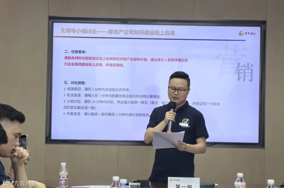 在11名会员完成自我介绍后,为了加深会员间的联系,活动进入了团队共创环节。会员们围绕“房地产公司如何构建线上自渠道”进行了深入讨论,并选出代表对讨论成果进行了总结发言。