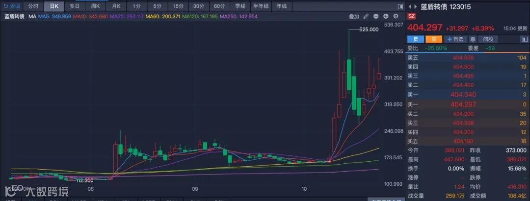 仍有可转债标的受到资金追捧。蓝盾转债30日上涨8.39%,当天涨幅排名第一,收涨404.297元。本周以来,蓝盾转债累计上涨29.7%,接近30%。