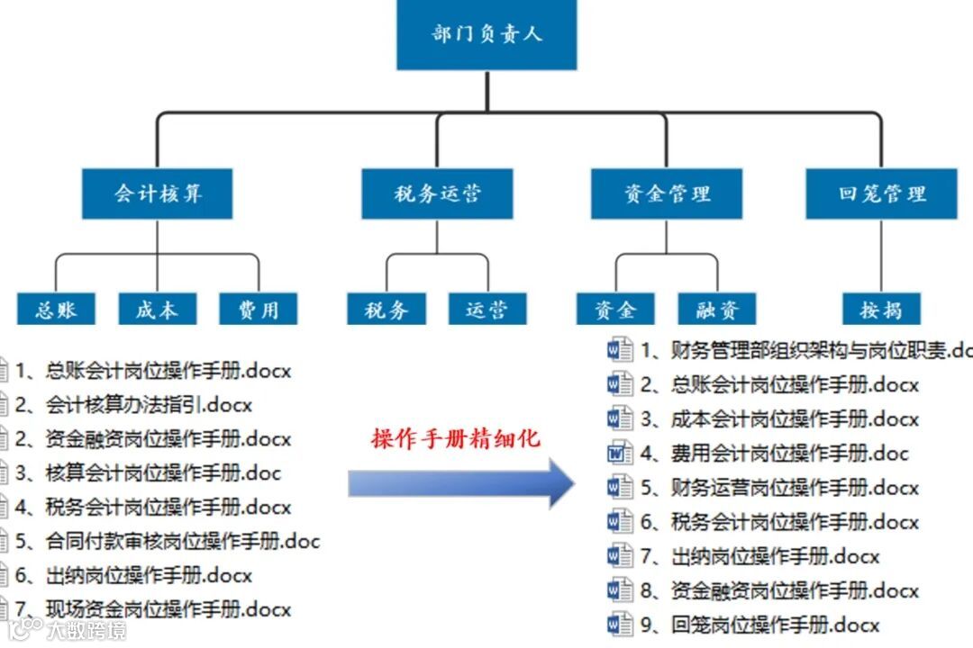 组织编制财务各岗位操作手册,科学划分各岗位的工作内容,循序推进岗位轮换,既保证效率,形成一定的集约化、规模化的业务方法,又能提高财务人员的技能,指导财务管理部日常工作,助力公司经营管理需要,使公司与员工实现双赢。