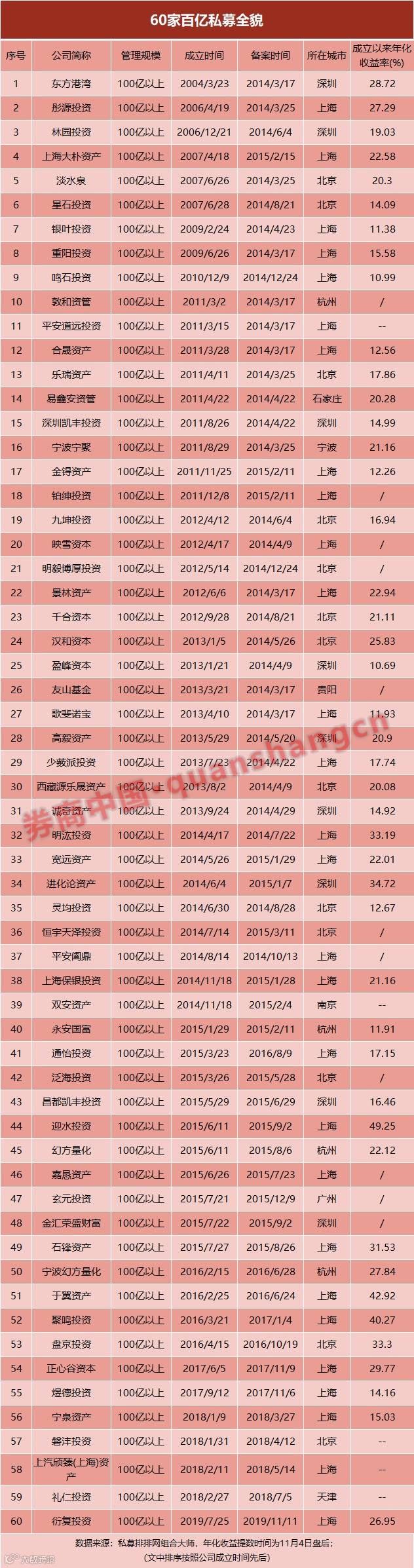 此前,新价值投资、清水源投资、拾贝投资、瀚信资产、从容投资等一批私募均突破百亿大关,但最终未能守住百亿规模。