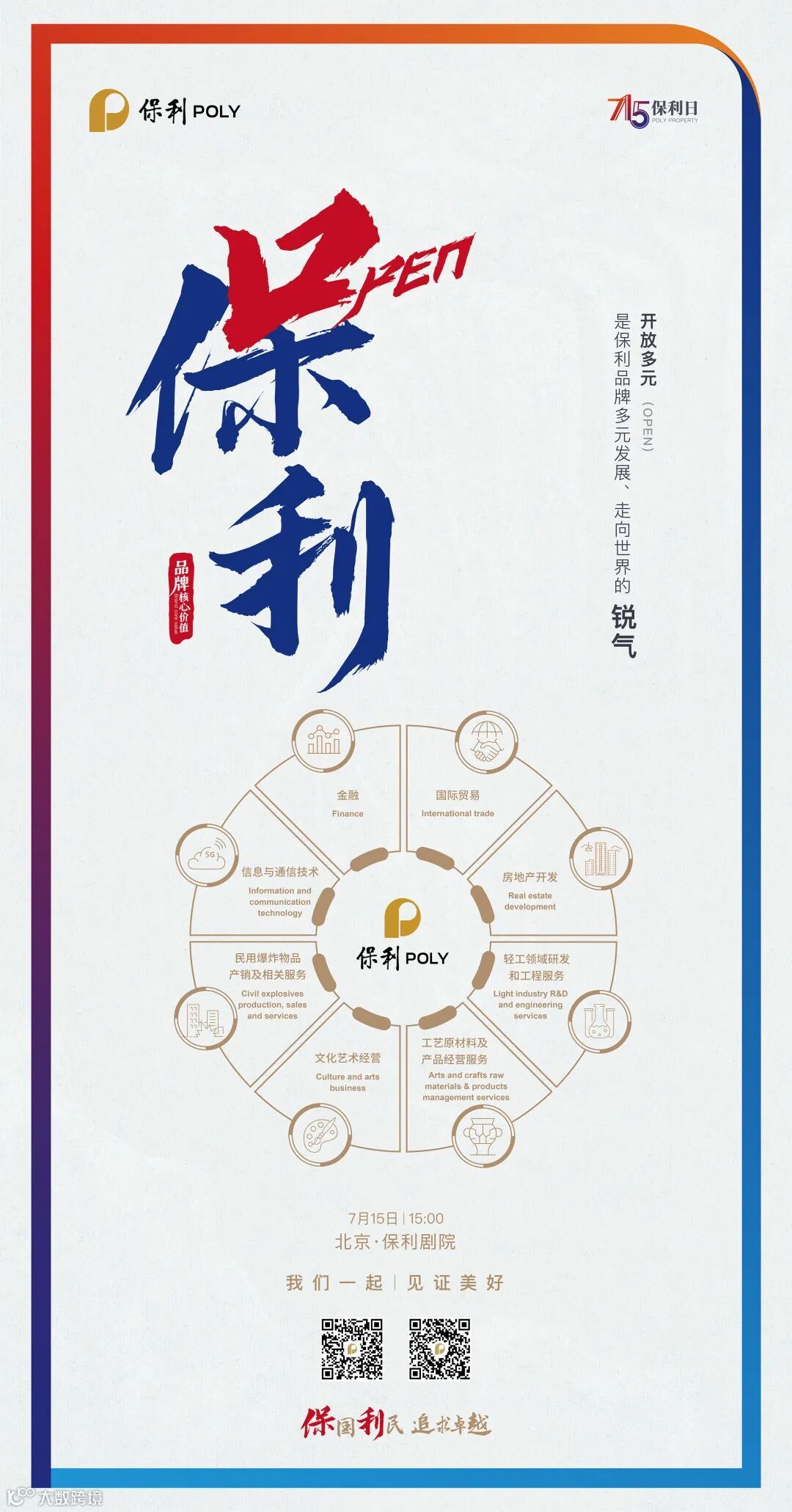 “实力非凡(Powerful)”“开放多元(Open)”“卓越引领(Leading)”“活力进取(Youthful)”组成了保利POLY品牌的核心价值,展示了保利的“底气”“锐气”“志气”和“朝气”——