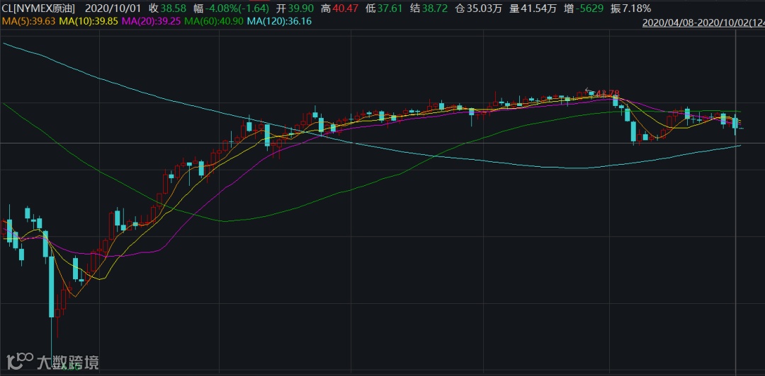 当地时间周四,国际油价大跌,美油日内最大跌幅超过6%,连续跌破40美元、39美元,一度失守38美元关口,布油盘中跌超5%。Wind行情数据显示,截至收盘,NYMEX原油收报38.58美元,跌4.08%。