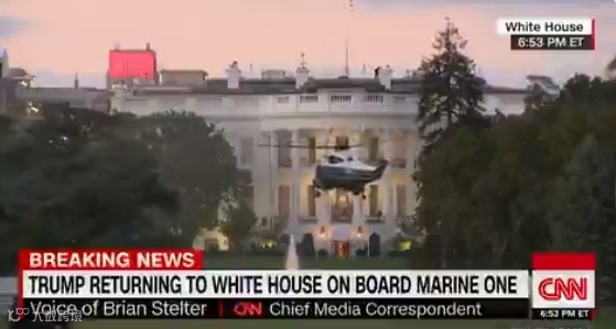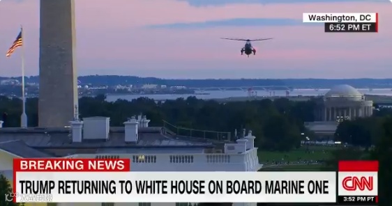 CNN此前消息,5日傍晚,特朗普走出沃尔特·里德医疗中心,准备乘坐“海军陆战队一号”返回白宫。