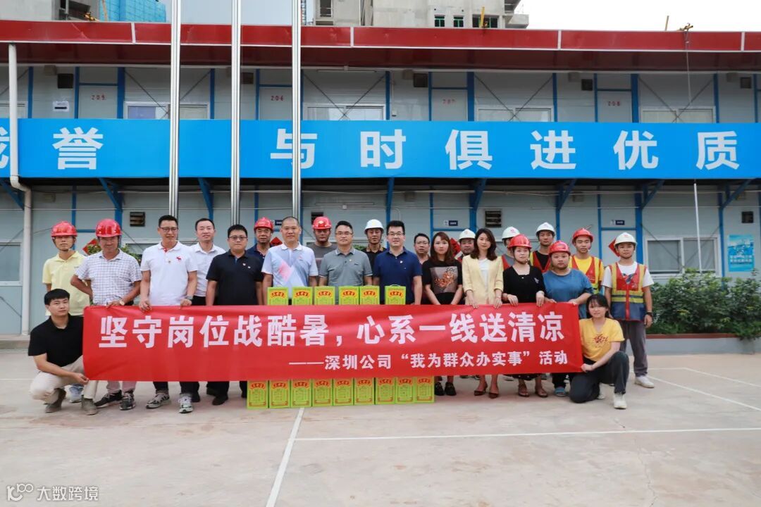 为鼓励员工坚守岗位,冲刺经营目标,深圳公司工会主席陈学兵带队,于6月8日和11日分别前往惠州保利鹿江来、惠州保利阳光城和深圳保达誉都三个在建在售项目,开展为一线员工“送清凉”活动。