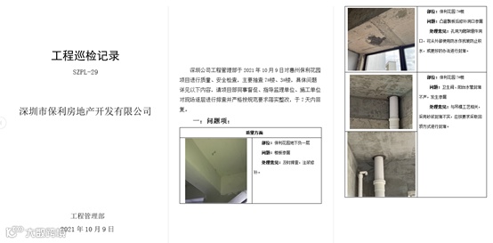 工程部严格落实保利置业各项质量管控制度,注重施工过程的管控,有效避免因质量缺陷导致的返工,避免造成对工期、成本不利的后果。