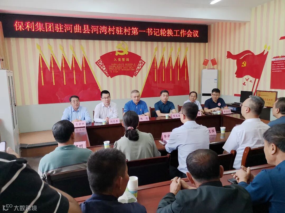 2021年9月15日,保利集团驻河湾村驻村第一书记轮换工作会议在山西省忻州市河曲县楼子营镇河湾村召开,保利集团驻河湾村驻村第一书记劳业波同志履职期满,保利集团选派保利置业深圳公司巨学刚同志接任驻河湾村驻村第一书记一职。河曲县副县长朱志国、县委组织部副部长李兆宇、保利置业深圳公司党委副书记、副董事长陈达、保利国际党群工作部处长宋大治、河湾村班子成员及党员代表等21人出席本次会议。