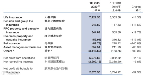 最新业绩显示,2020年上半年,中国太平总保费及保单费收入1371亿港元,同比轻微下降1.3%;股东应占溢利28.77亿港元,同比下降57.3%;股东应占权益784.87亿港元,较去年末增长2.9%;总资产达到9,983亿港元,较去年末增长8.6%;股东应占每股总内含价值45.910港元,较去年末的44.564港元增长3.0%,其中太平人寿内含价值较去年末增长2.7%。