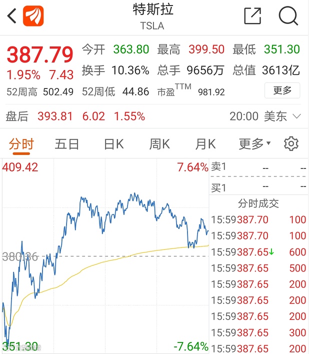 这一故障导致了市场对于特斯拉安全性的担忧,体现在股票上就是投资者的疯狂抛售。周三,特斯拉股价大跌10.34%,报收380.36美元。周四,特斯拉股价企稳回升,收涨1.95%。若从9月1日盘中高点算起,9月份以来特斯拉股价已下跌114.7美元,总市值缩水1069亿美元,折合约7300亿元人民币。