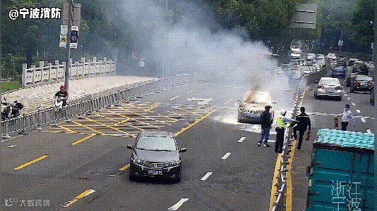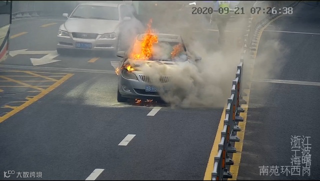 没过几秒,引擎盖冒出了明火