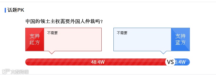 网友们发起了一个投票~~~关于国际仲裁法庭将公布关于涉及南中国海主权的仲裁,都21世纪了,中国的领土主权需要外国人仲裁吗?