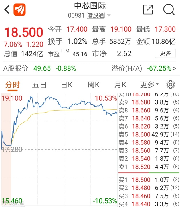 受美国科技股的带动,今日港股科技股今天几乎全面大涨,中芯国际成为反弹领头羊。