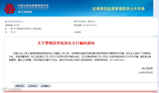 值得注意的是,今年5月,甚至连浙江证监局都遇到了冒名顶替的诈骗分子。
