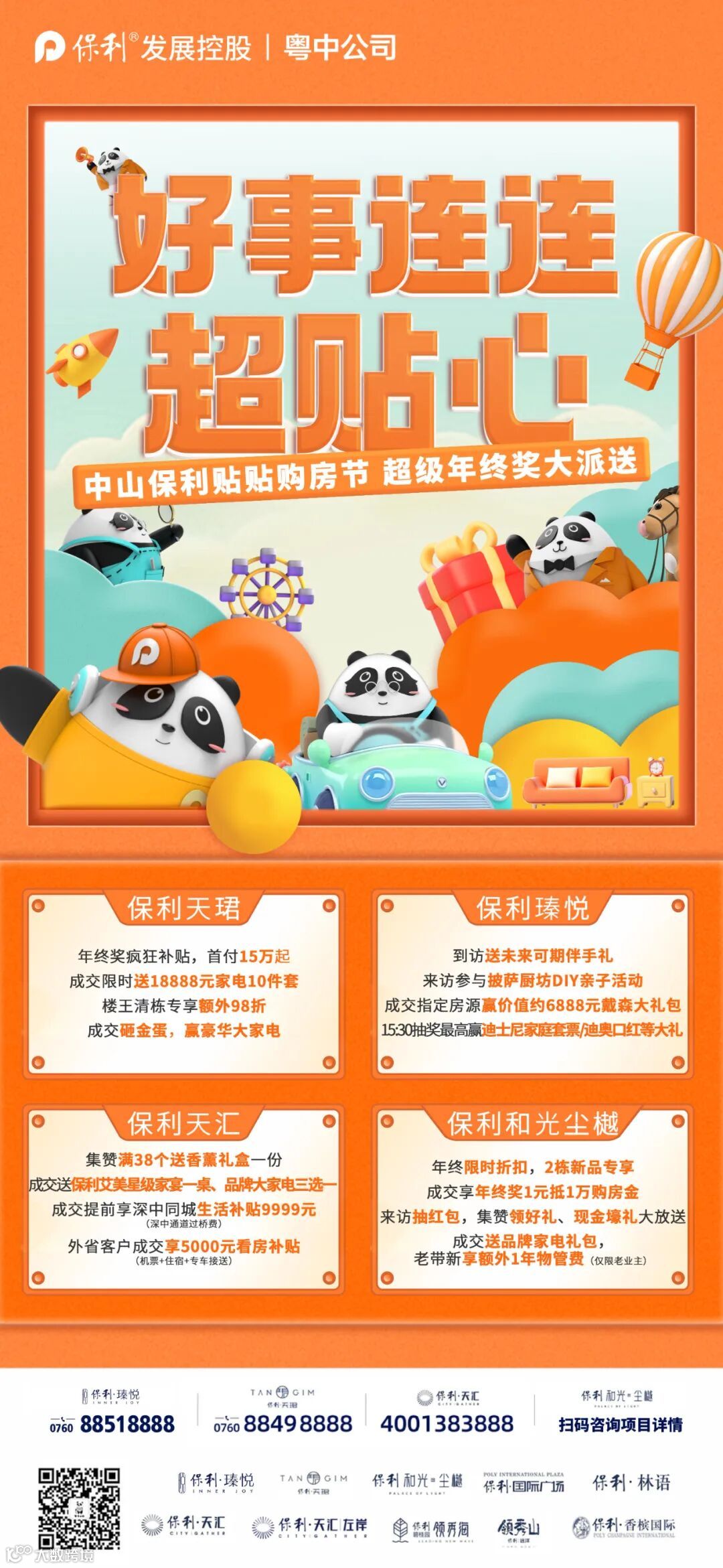 中山保利贴贴购房节,为置业者送上年终置业惊喜补贴,优惠力度大,奖品福利丰盛。