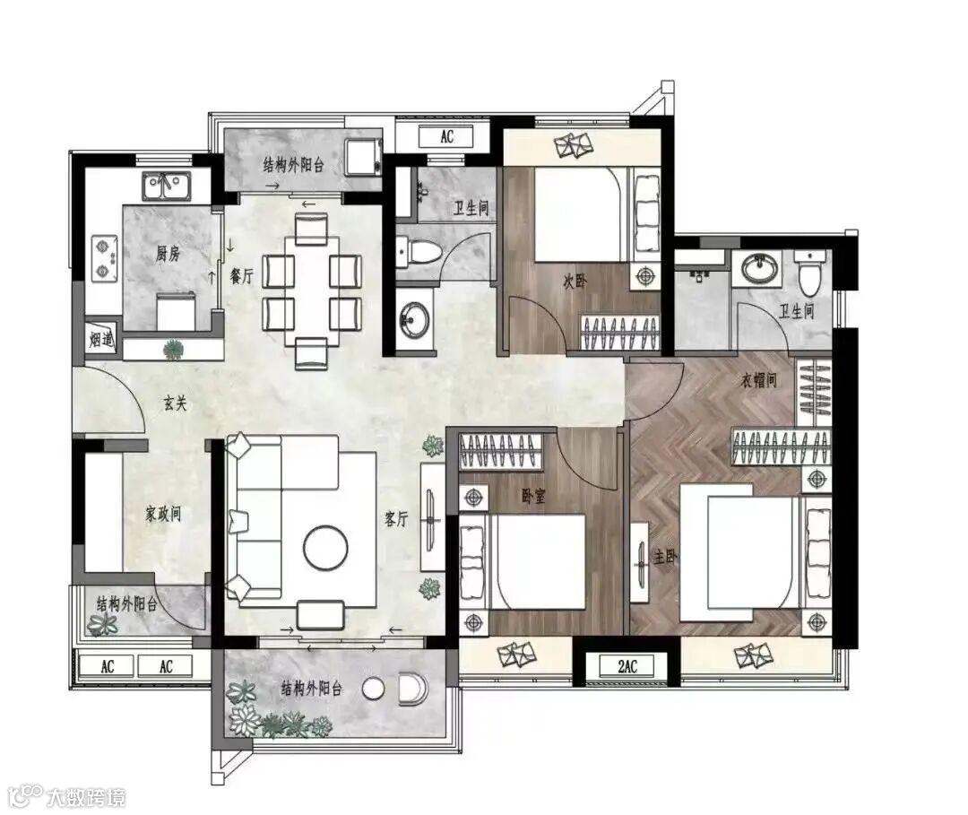 尤其是建面约117㎡3+1房,不仅做到四开间朝南、南北对流,四房中的三房均朝南向;且每个房间都带飘窗,做到“一房一窗一景”。主卧为套间设计,带独立卫浴和衣帽间,堪比5星级酒店套房,尽显尊贵。