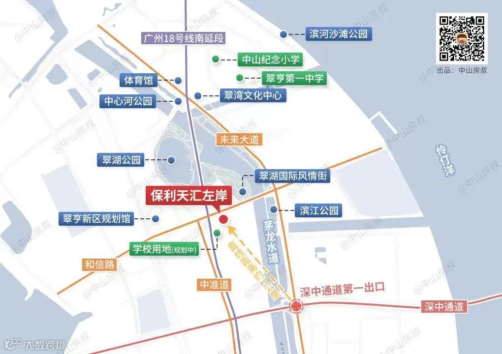 且在交通方面,项目直线距离深中通道第一出口仅约1公里,往东可通前海,往西也可通过中开高速快速抵达中山城区。此外,项目周边还有南中珠城际、中山港新客运码头,海陆交通网逐渐成型。