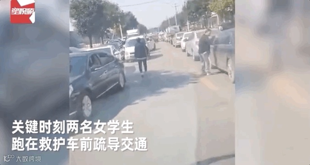两位女孩徒步指挥交通