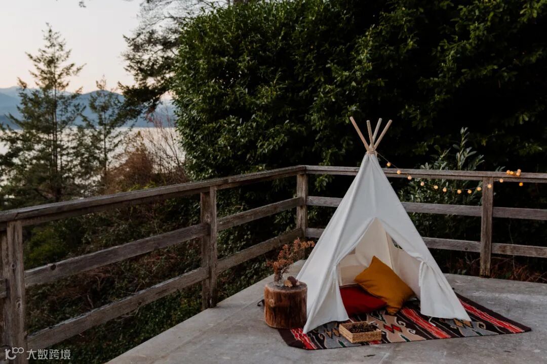 在保利天珺的社区草地上,搭建起一顶顶白色支架小帐篷,还配以唯美的仿真花艺和露营小摆件。