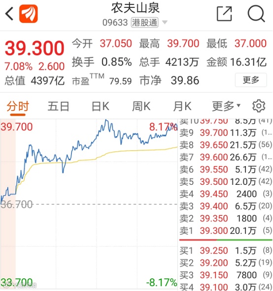 研究机构普遍对农夫山泉的发展看好,国联证券在研报中指出,农夫山泉当前已建立起较好的品牌知名度,并且在其主营的包装水业务占据细分行业龙头地位。未来战略上,预计公司将通过品牌高知名度,持续推新,进入其他软饮细分行业,并最终成为类似可口可乐此类标杆级别的软饮料全品类公司。