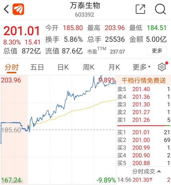 此外,钟睒睒还持有上市公司万泰生物74.23%股权。截至9月23日收盘,万泰生物收涨8.3%,总市值为872亿元。