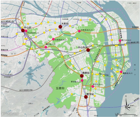 凭借位于大湾区核心几何中心的先天条件,马鞍岛依托广州地铁18号线延长线(规划)、中山地铁2、4号线(规划),乃至深圳地铁33号线(规划)形成地铁网络。加上,中开高速(建设中)、东部外环高速(规划)等重要道路的推进,板块将形成四通八达的交通路网。(规划来源:中山翠亨新区官微)
