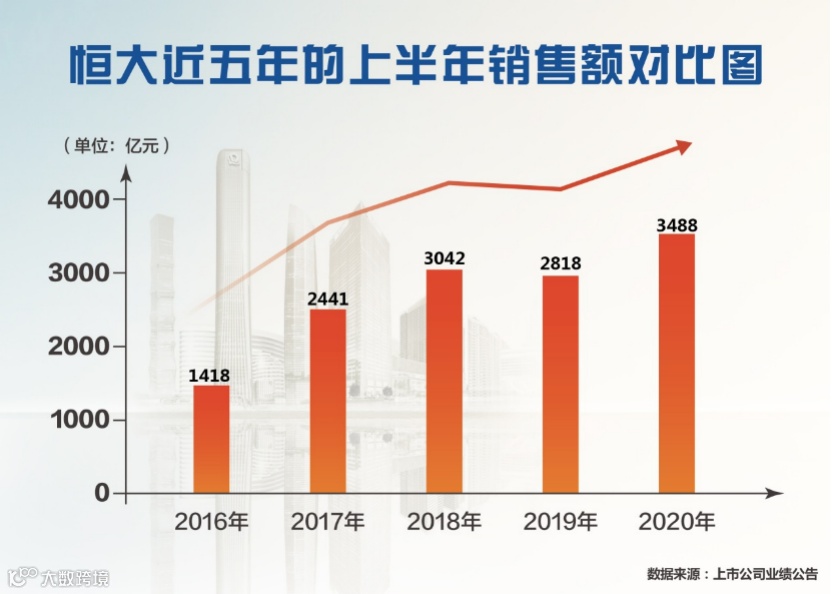 值得一提的是,在今年疫情之下,2月1日至13日由于全国售楼部关闭,恒大立即启用了“恒房通”网上售楼系统进行网络销售,上半年约3500亿元销售中80%——即约2800亿,是网上销售带来的。