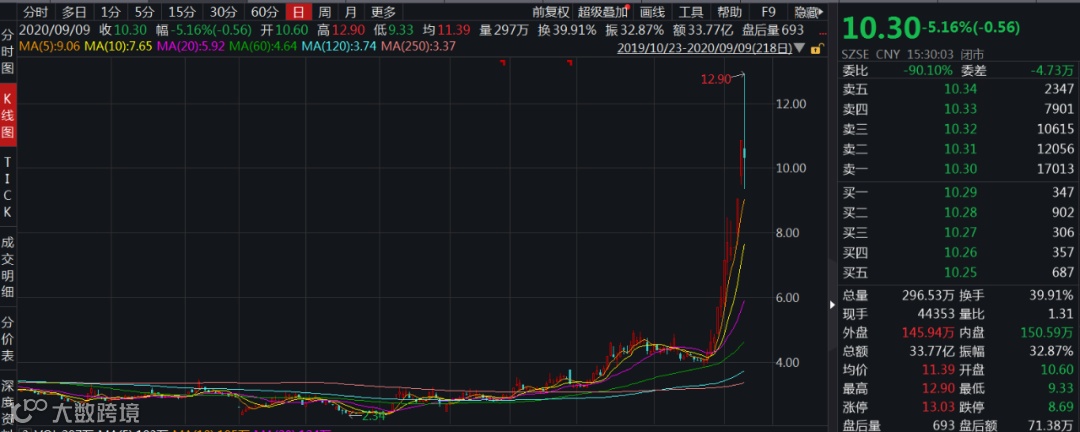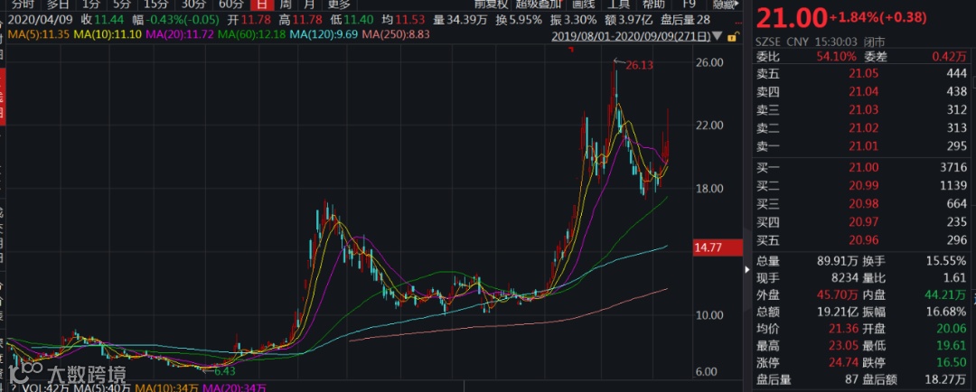 股价上来看,亚光科技年初股价在7元左右,6月以来更是加速上涨,一度超过26元/股,随后有所回调,截至9月9日收盘报21元/股,年内涨幅接近300%。