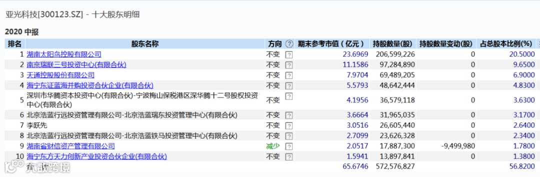 半年报显示,此次减持的股东均为公司前十大股东,除太阳鸟控股外,其余四位股东都拟清仓式减持。该四名股东所持股份均是通过此前太阳鸟(亚光科技前身)收购亚光电子时获得。