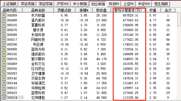 值得一提的是,疫苗股以及医药股在创业板中占比较大,若这类板块剧烈调整,有可能对整个创业板带来情绪性冲击。但所幸的是,另一大板块突然被重视,那就是“证券行业数字化”。若从单只股票来看,东方财富在创业板中所占权重更大。