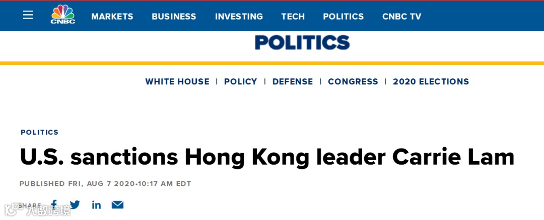 CNBC:美国制裁香港特区行政长官林郑月娥
