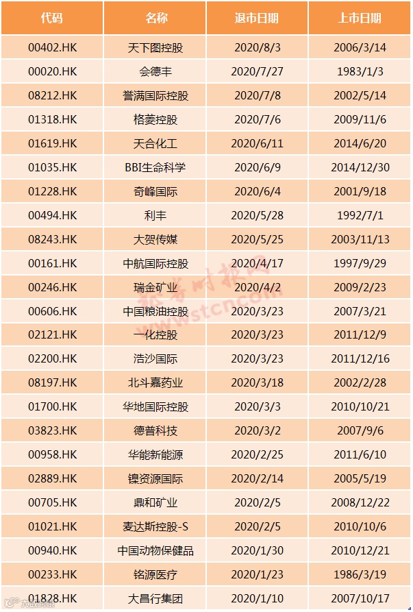 2020年以来香港退市股一览