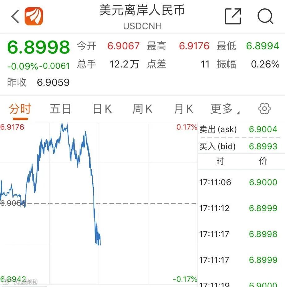 8月19日,离岸人民币兑美元一度收复6.90关口,为1月22日以来首次。