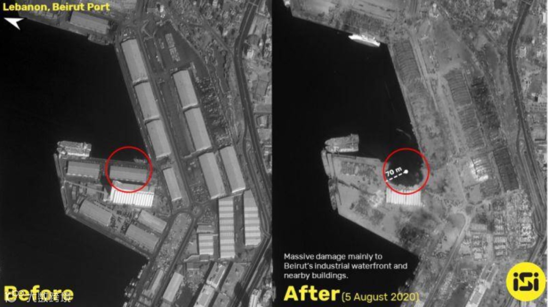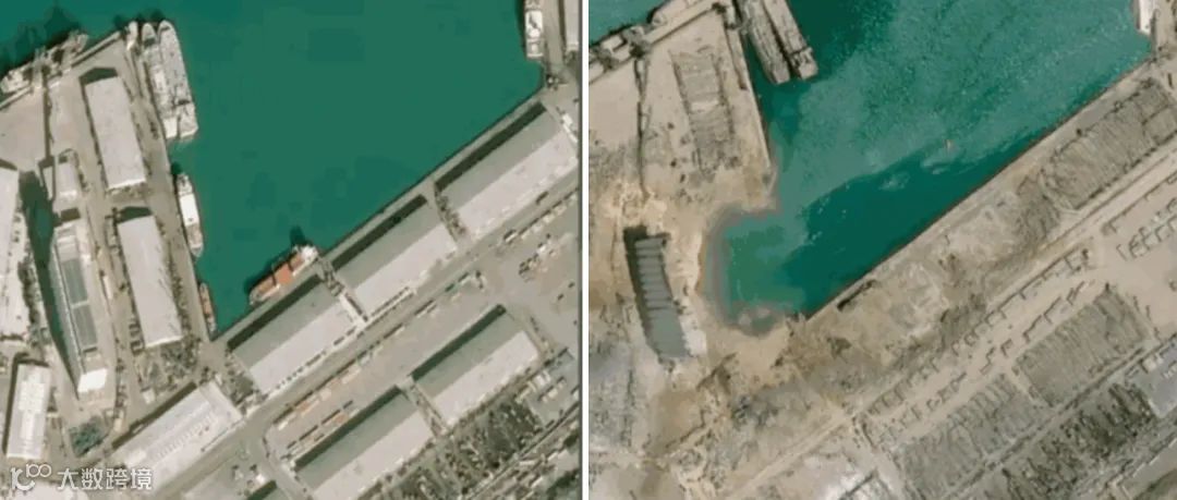 △爆炸前后的贝鲁特港口区