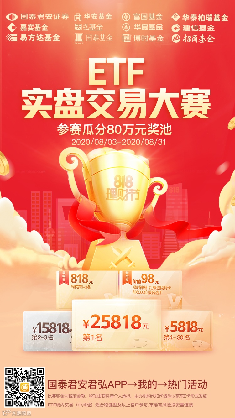 本届818理财节将持续整个8月,依托旗下君弘APP,内涵包括“财富人生”投教游戏、明星金融产品群星荟萃、国泰君安研究所所长黄燕铭等在内的知名大咖视频直播、“君享投”基金投顾、联合基金公司开展ETF实盘赛等五大亮点。