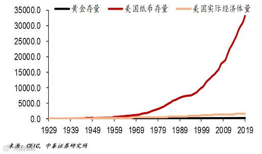 最近这段时间以来,黄金价格也在持续上涨,突破历史新高。实际上从1971年到现在,CPI的涨幅其实并不高,美国的黄金的涨幅是超过美股(不算分红)的,而股票的涨幅超过房地产。下图中,美国黄金涨了34倍,美国的股市涨了31倍,房地产的价格上涨12倍,普通商品的价格上涨了5.3倍,居民的实际收入增长只有1.5倍,所以居民还是远远跑输了通胀。由此,我们尽量地不要去持有现金。目前又面临新一轮的纸币超发,而且美国零利率、日欧负利率,在此阶段,配置黄金应该是没有错。
