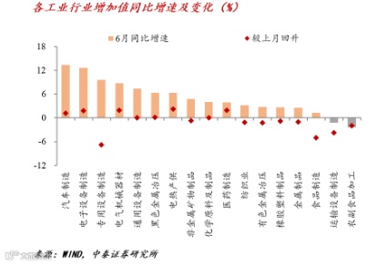 在固定资产投资方面,基建投资、地产投资都还可以,尤其在第二季度表现比较好,制造业还是处在一个负的增长,说明还是需求不足,我们的实际有效需求仍不足。基建投资在4、5月份增长势头比较强劲,6月份反而有所回落。
