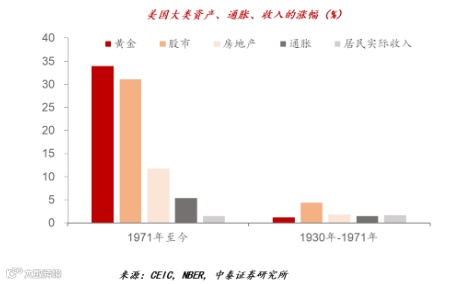但是,与权益资产或黄金相比,房地产的风险收益比 不相匹配,而且在居民家庭中的占比过高,未来五年看,减持应该是大方向。