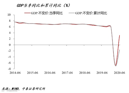整体来讲,今年上半年的GDP表现应该还是略超预期的。因为本来大家预期中国是这次全球疫情的重灾区,没想到美国倒成了重灾区。中国的疫情得到了很好的控制,复工复产总体情况也比较理想。二季度GDP增速明显加快,从拉动经济增长的“三驾马车”看,虽然前两驾马车(即投资和消费)都是负增长,但出口对GDP做了一个正的贡献。从各个行业来看,高技术和装备制造业增长比较快;从产品来看,工程机械和新经济相关的产品增长比较快,比如说挖掘机、铲土运输器械、工业机器人、集成电路等,在上半年都出现了一个比较高的增长;服务业生产增速回升到了2.3%,恢复还是偏慢。上半年,我们金融行业的表现还是比较好的,可能因为消费少了,储蓄增加了,很多人把储蓄用来投资了。