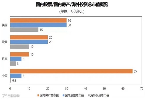 至于房地产,我前面也讲到了,下面这张图是我在《华尔街日报》看到的,中国房地产总的市值是65万亿美元,超过了美国+欧盟+日本之合,美国+欧盟+日本是60万亿,中国是65万亿美元, 接近GDP的体量5倍,跟我们国家居民的收入水平相比的话也是不相称的,所以存在估值偏高的嫌疑,这也是今年来我国各地坚决执行房住不炒、严格控制房价的原因 。