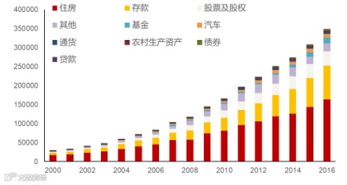 从大类资产的角度来讲,我们应该配置的是金融资产,因为房地产配置比例是最高的。我们红色的部分是住房。住房是中国居民比例最高的资产,今年新房的销量,我想肯定是要回落的。政治局会议明确强调“房住不炒”,最近对于深圳的房地产调控政策是非常具体、非常严厉,也是非常到位的。所以,大类资产配置方向,其实还是要把增量的资产向权益资产、基金、债券,向部分的理财产品配置。